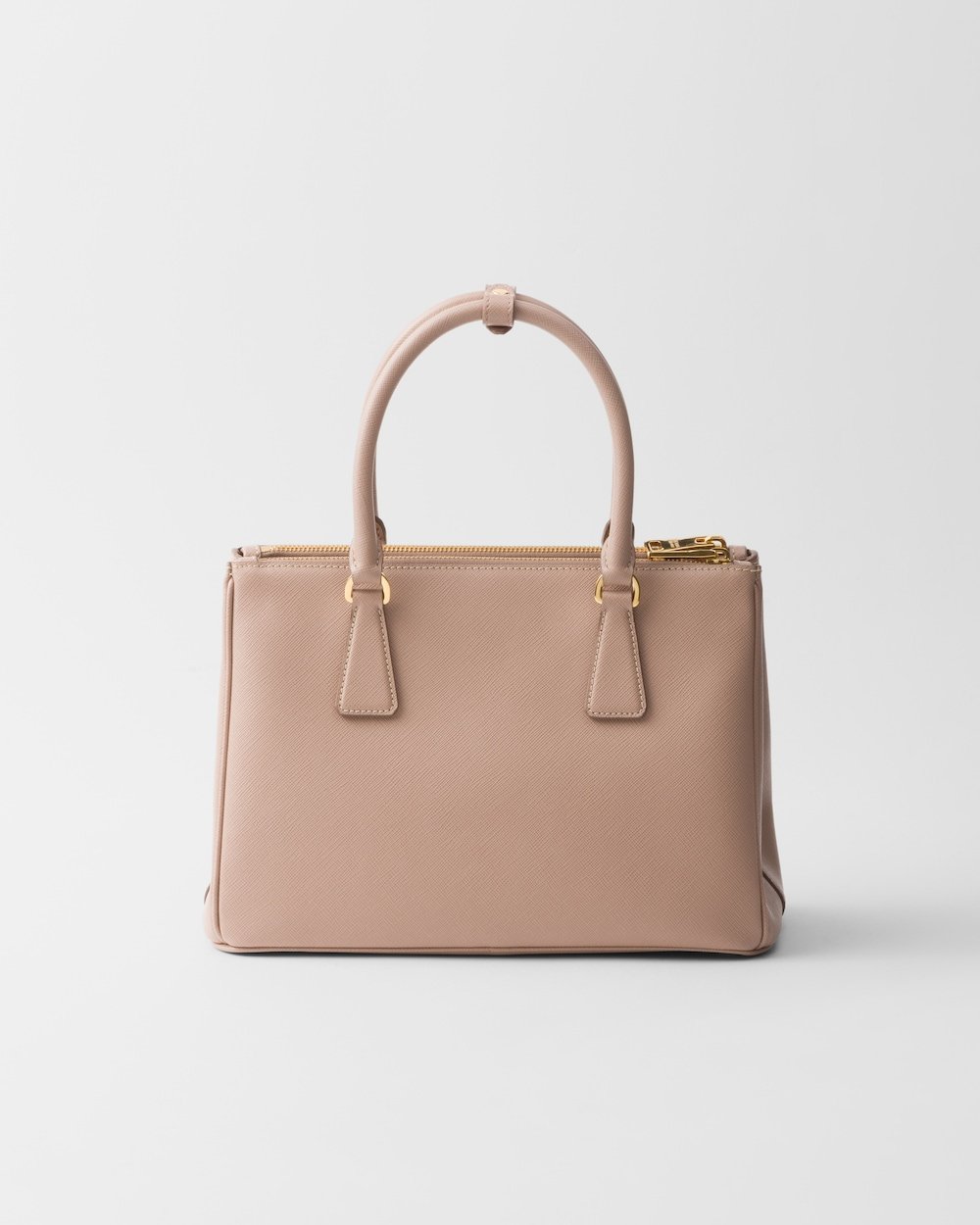 Production of the Prada Galleria bag, composed of 83 pieces, is an authentic fusion between industrial precision and the refined accuracy of craftsmanship that can only be performed by hand. The design is clean and elegant yet innately pragmatic, an aesthetic language blending form and function that combines history and modernity. Originating the definition of “timeless”, the Galleria bag has become a hallmark of Prada’s identity in the twenty-first century. The accessory, presented in the medium version, is made of iconic Saffiano, a calf leather patented by Mario Prada that is resistant to scratches and water and defined by its crosshatch texture.
