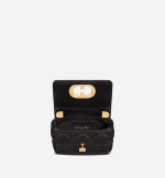 The Dior Caro bag is a creation that combines both modernity and timeless elegance. Crafted in black supple calfskin with Cannage stitching, it features a flap adorned with a ‘CD’ clasp, inspired by the seal of a Christian Dior perfume bottle. The miniature shape’s removable chain shoulder strap has a leather insert that provides a comfortable and adjustable carry, to be worn with day or evening attire.