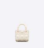 The Lady Dior bag embodies the House’s vision of elegance and beauty. Crafted in latte Cannage calfskin with a Diamond motif, its iconic silhouette is embellished with tonal metal ‘D.I.O.R.’ charms. The micro Lady Dior bag can accommodate all the small essentials. Thanks to top handles and an adjustable and removable shoulder strap, the versatile style can be carried by hand, worn over the shoulder or crossbody.