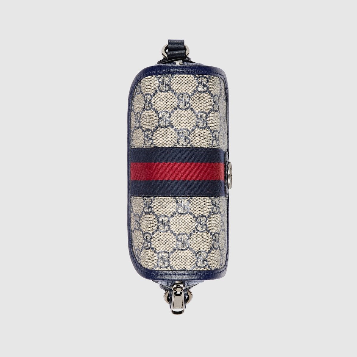 Guccio Gucci’s everlasting monogram continues to enrich new designs with a logo feel. This Ophidia mini shoulder bag is presented in a beige and blue variation of the historical GG Supreme canvas, complete with the Web stripe.
