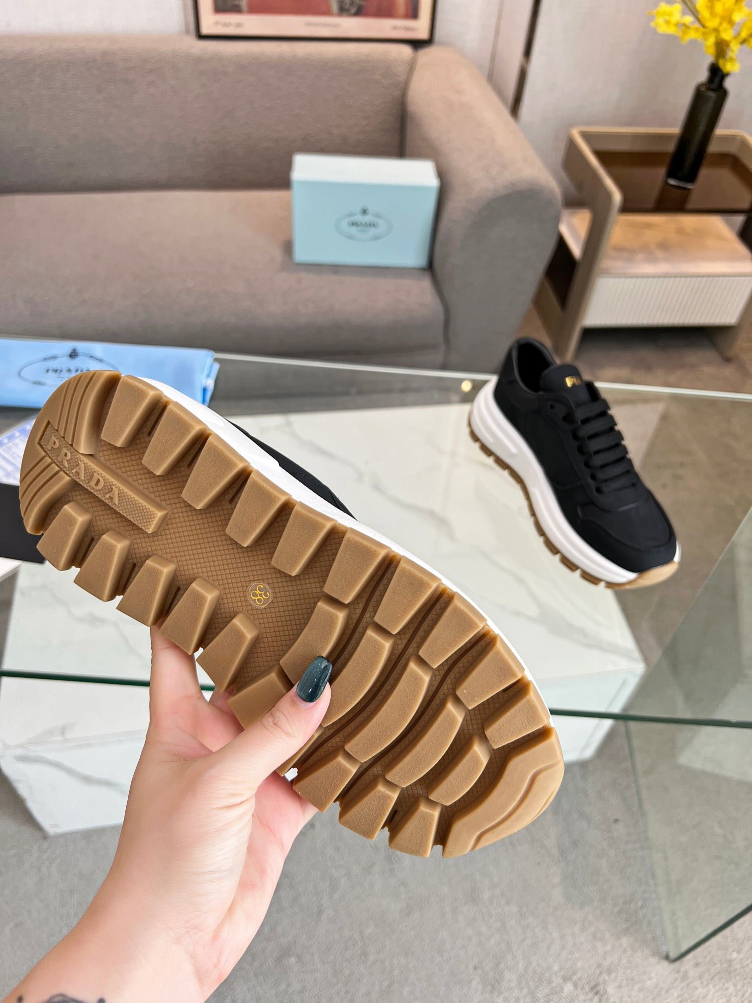 “PRADA…” The updated 2024 explosion is here. The original 1 to 1 thick bottom. fabric silk cowhide inside: sheepskin. weigh foot: sheepskin. 35–41 yards. “34 and 41 yards can be customized not to return two colors of black and white