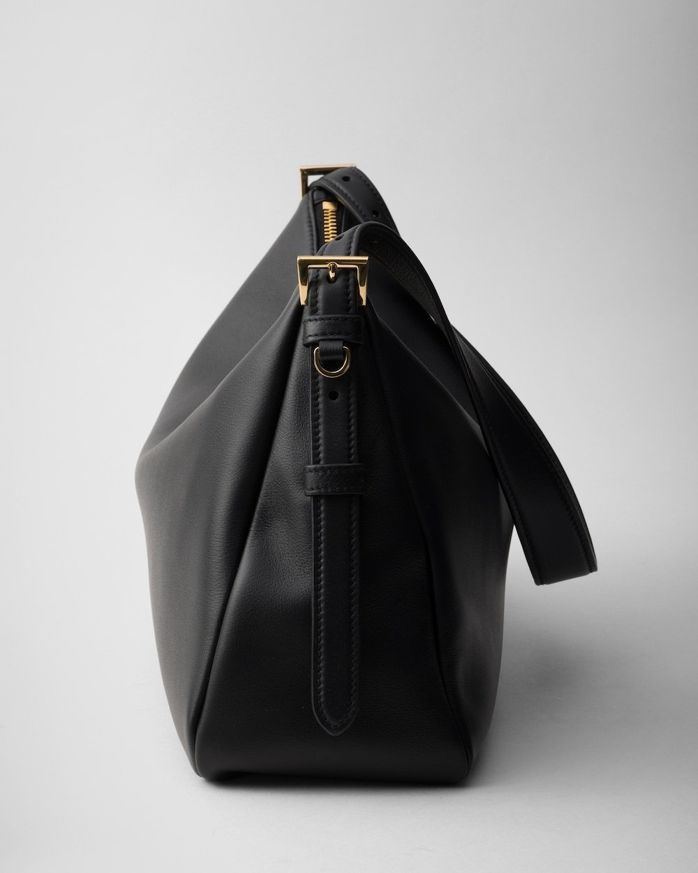 The sophisticated minimalism of the ’90s inspires the new Prada Aimée bag. The design evokes the instinctive gesture of holding a bag with its soft silhouette, created for effortless wear on the shoulders or cross-body.