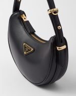 Sleek, curved lines form the silhouette of this mini-bag with contemporary charm. The versatile, compact design in leather is embellished with refined details and brightened by the shiny metal hardware. The accessory decorated with the enameled metal triangle logo comes with an elegant adjustable shoulder strap for versatile wear.