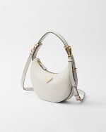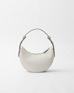 This sleek leather bag has a versatile, modernist allure. The accessory with a sinuous silhouette is completed by the leather extension and detachable shoulder strap for wearing different ways. The bag with nappa leather interior and metal hardware is embellished with the enameled metal triangle logo on the front.