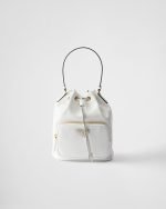 The Prada Duet bucket bag with a soft, contemporary design is made of naplak patent leather that gives the accessory a distinctive shiny effect and texture with vintage allure.