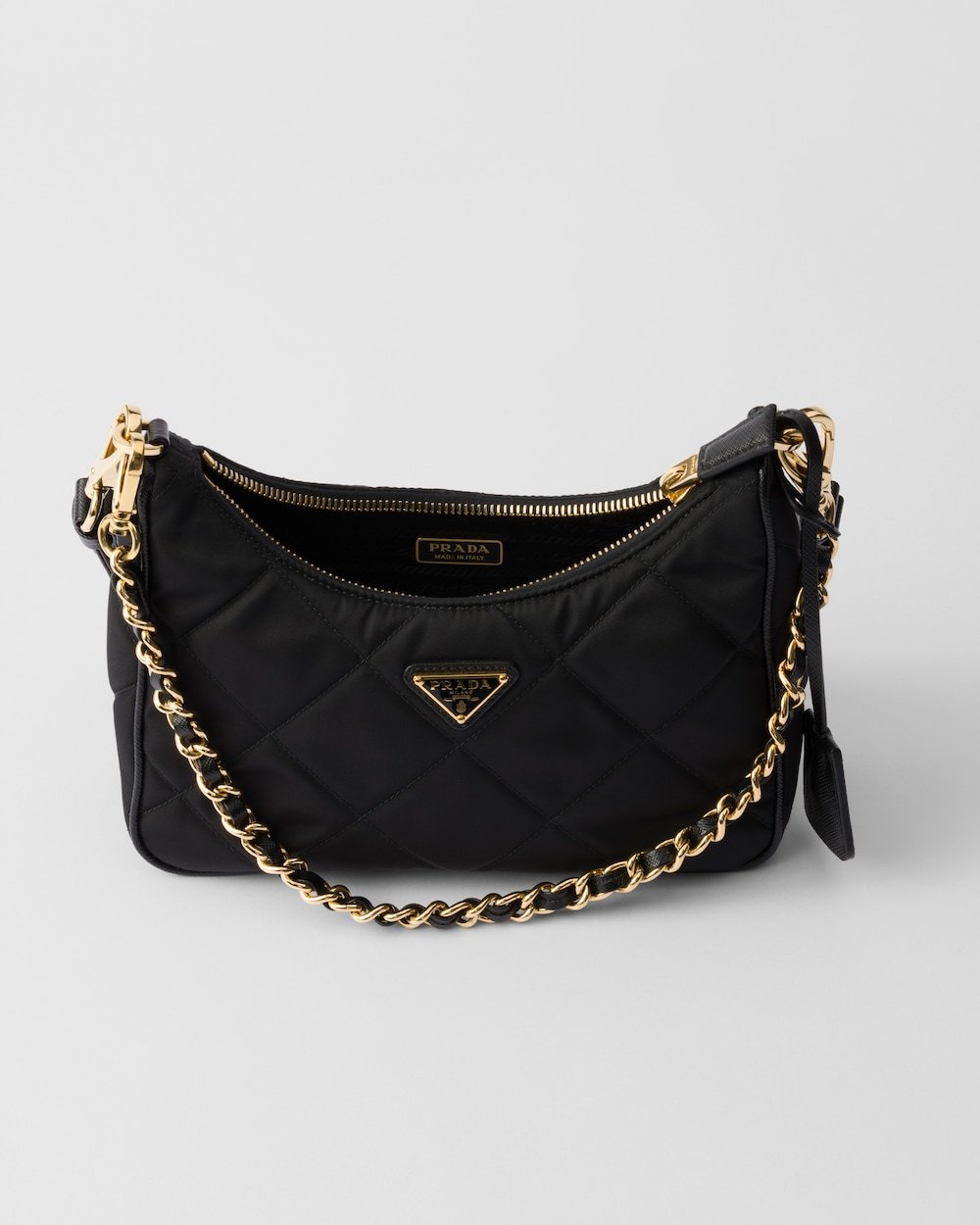 Padding and top-stitching enhance the versatile design of this bag made of Re-Nylon, a technical fabric that blends artisan crafting and innovation.