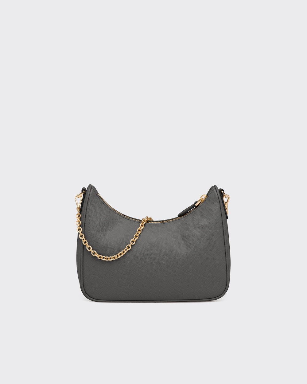 An iconic silhouette with sophisticated details that enhance the design: Prada transforms the classic shoulder bag, reinterpreting it in Saffiano leather with a cross-hatch motif that is a hallmark of the brand. The accessory is completed by a removable leather pouch and Re-Edition keychain, making the bag unique and functional.