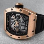 Satin-finished 18-karat rose gold forms the tripartite, tonneau-shaped case of the RM 035 Gold Toro. The timepiece’s crown, buckle and hands are also crafted in the precious metal. Presented on a black rubber strap with matching crown protector, the watch’s skeletonized movement is visible from the front and back thanks to its sapphire caseback. The RM 035 Gold Toro is a numbered, 50-piece limited edition, and is available exclusively at Richard Mille retailers throughout the Americas.