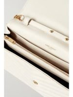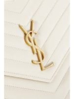SAINT LAURENT’s wallet has a slim silhouette and a pointed front flap just like an envelope. Intended to stash the smallest essentials it’s made from textured-leather and fitted with six card slots and a slip pocket. Detach the chain strap to hold it as a clutch.