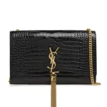 CLASSIC MONOGRAM Saint Laurent SHOULDER BAG WITH INTERLOCKING METAL YSL SIGNATURE AND METAL CHAIN TASSEL.