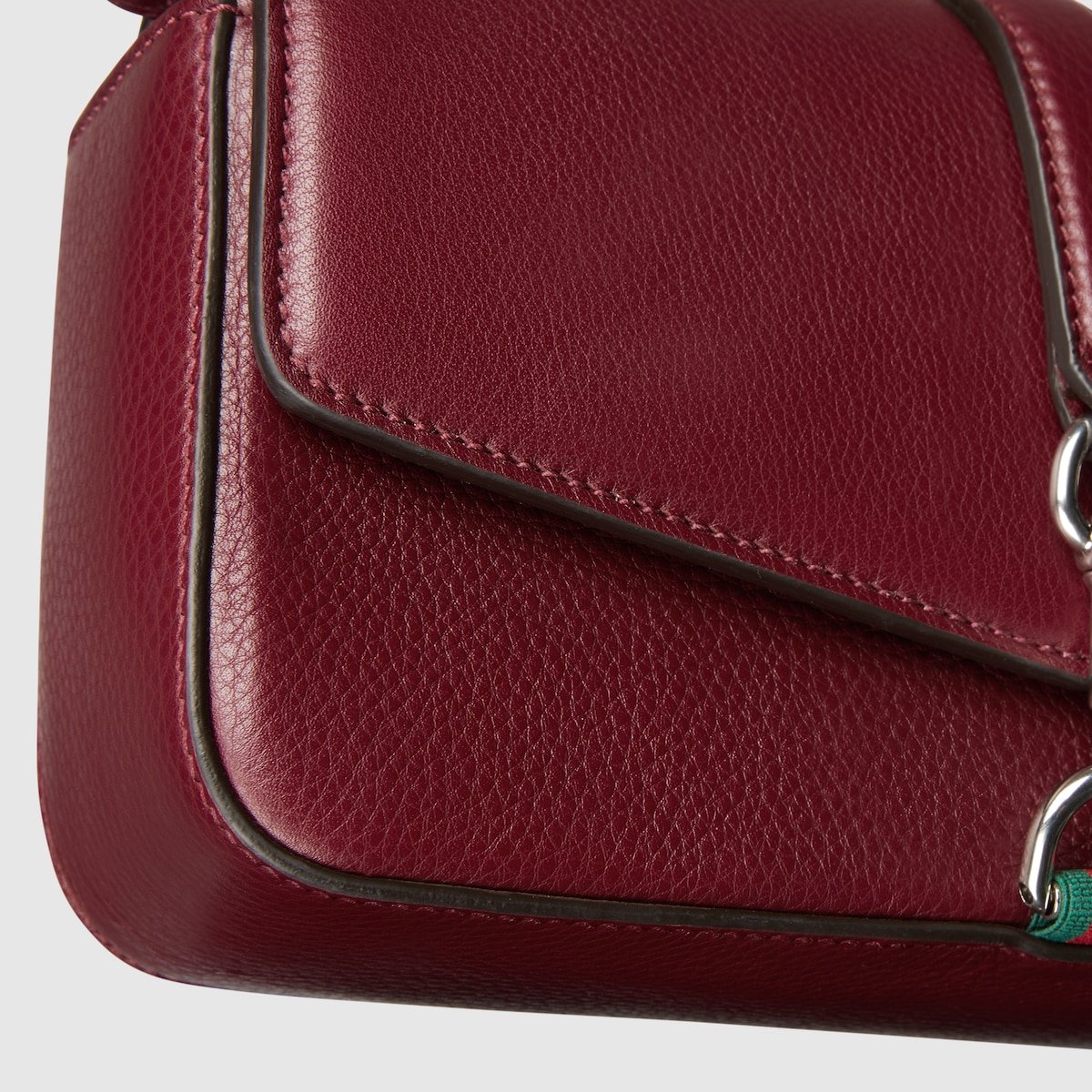 In the Spring Summer 2025 collection, crossbody bags in the House’s distinctive aesthetic feature a flap closure and the snap hook hardware, a new signature design of the House. This Gucci Rosso Ancora red grainy design features a Web detail alongside the signature snap hook closure.