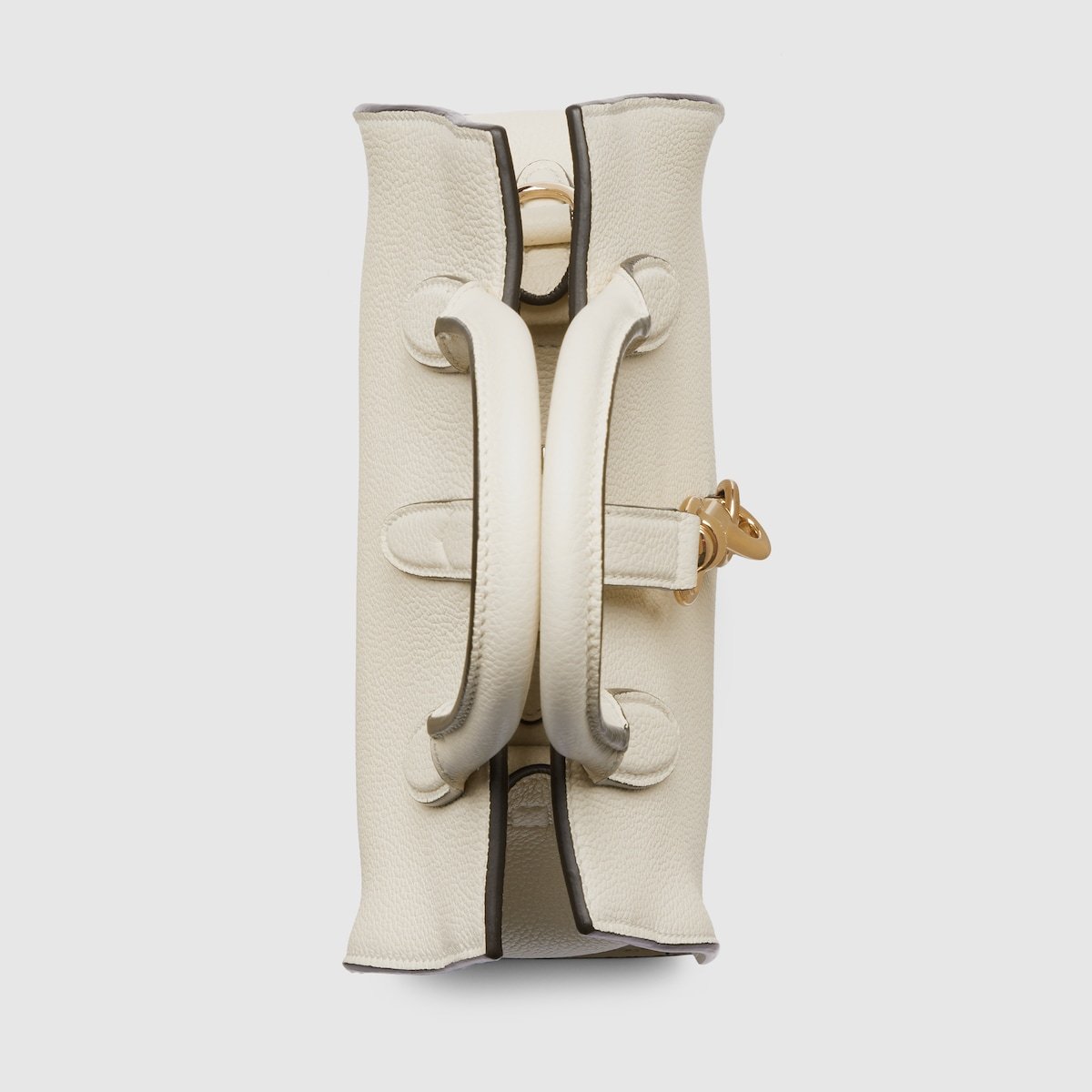 This small tote design continues to feature the snap hook closure, inspired by the styles first presented in Spring Summer 2024. The sophisticated leather in ivory has a distinctive natural grain. This top handle bag holds daily essentials, and is ideal for any occasion with its detachable and adjustable shoulder strap.
