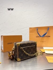 Returning to the House’s trunkmaking beginnings Nicolas Ghesquière creates the Side Trunk PM handbag in Monogram canvas with leather